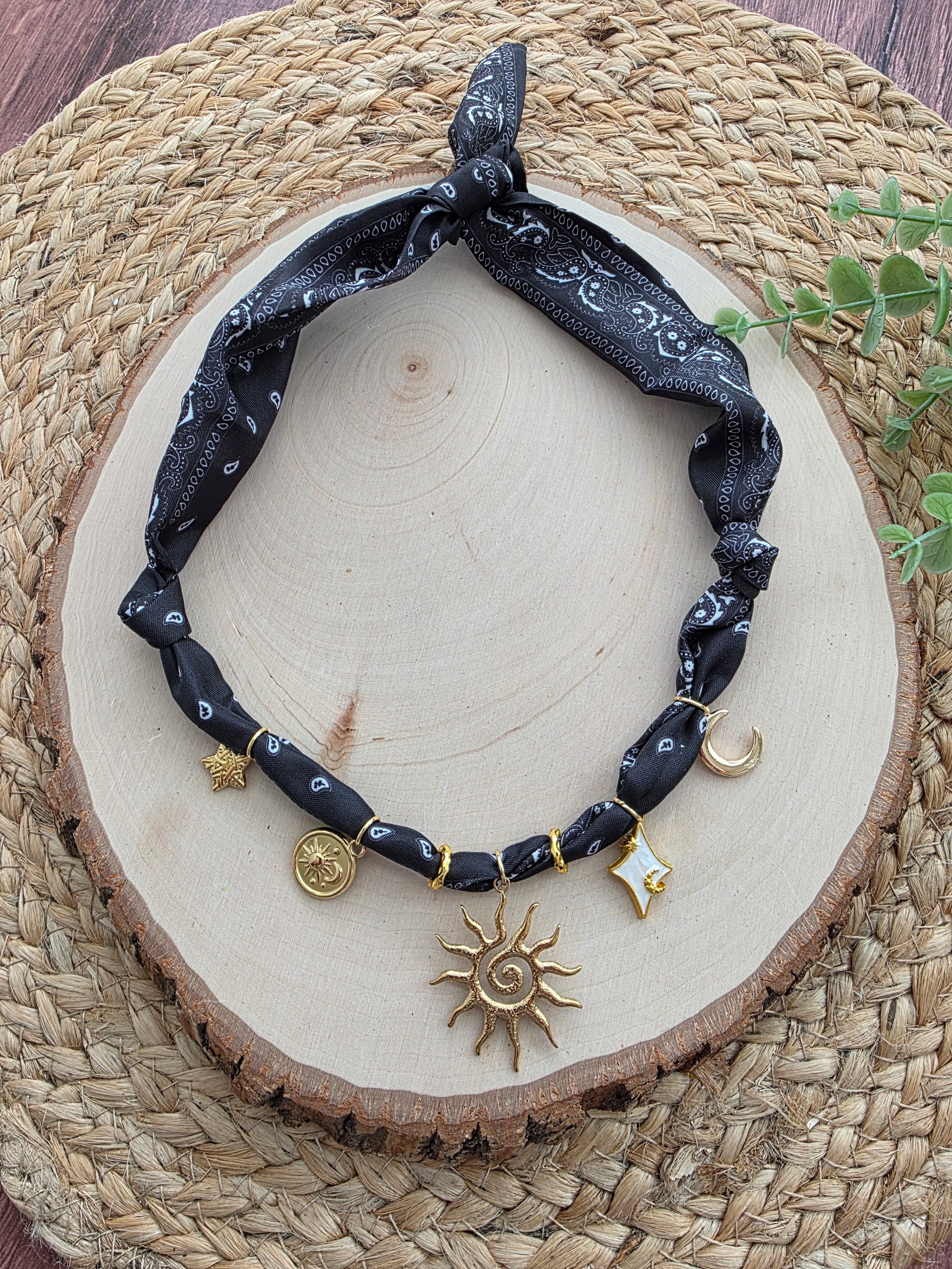 Handmade with care, each scarf charm necklace is truly one of a kind. The silky, lightweight scarf is crafted from a soft, silk-like material and tied in the back, making it adjustable for the perfect fit. Each necklace features its own unique charms, so each one is unique — a special piece that’s as individual as you are.