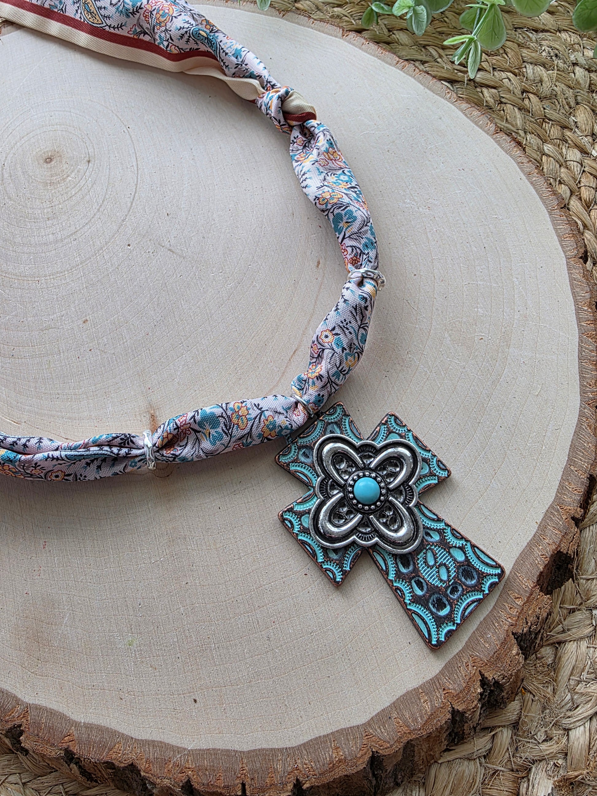 Rustic Cross Scarf Charm Necklace